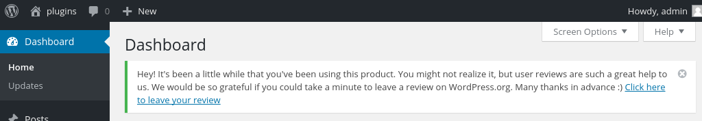 When the admin is loaded, the current time is compared to the initial timestamp and, when it is time, an admin notice will kindly ask the user to review your product.