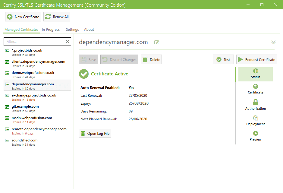 Certify The Web is the GUI and certificate management system for Let's Encrypt, Google Trust, ZeroSSL, BuyPass Go and other ACME enabled certificate services. Our app is used daily by over 150,000 people.