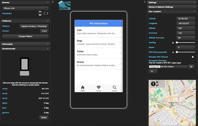 Note: If you get errors beginning with Error: static() root path required, don't fret. Ripple defaults the UI to Android so just switch to an iOS device and you'll be good to go.