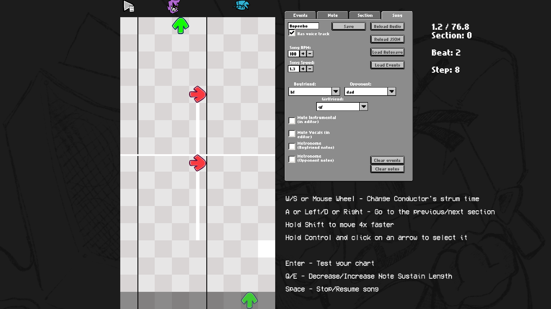 - You can now chart "Event" notes, which are bookmarks that trigger specific actions that usually were hardcoded on the vanilla version of the game.