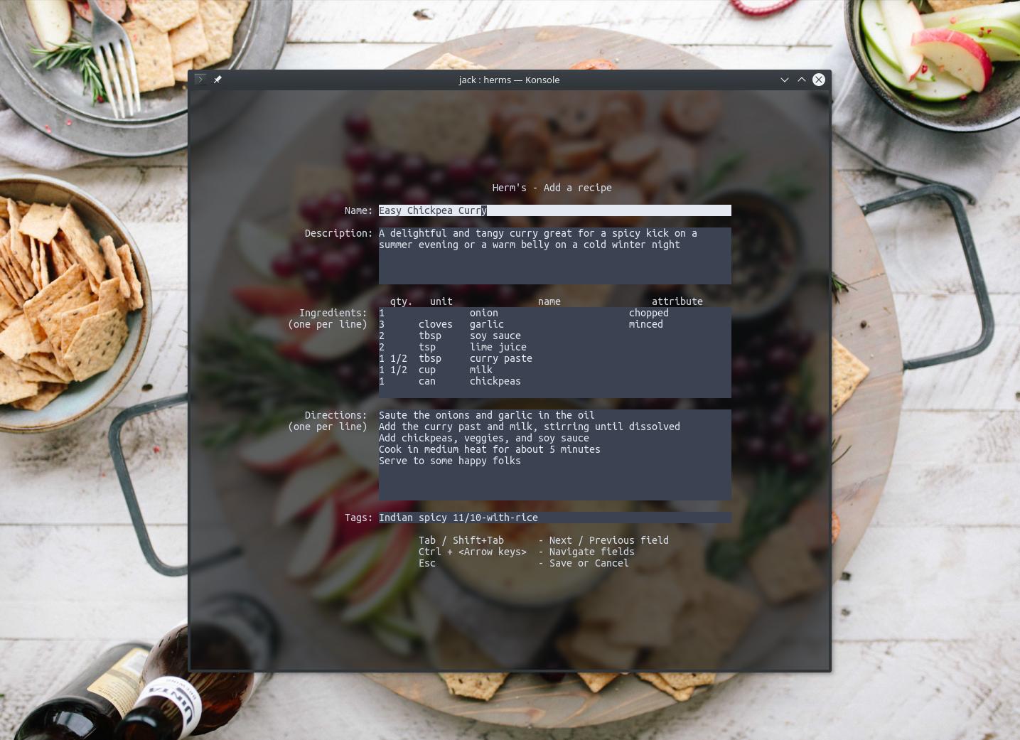 HeRM's: a Haskell-based Recipe Manager (yes, food recipes) for the command line.