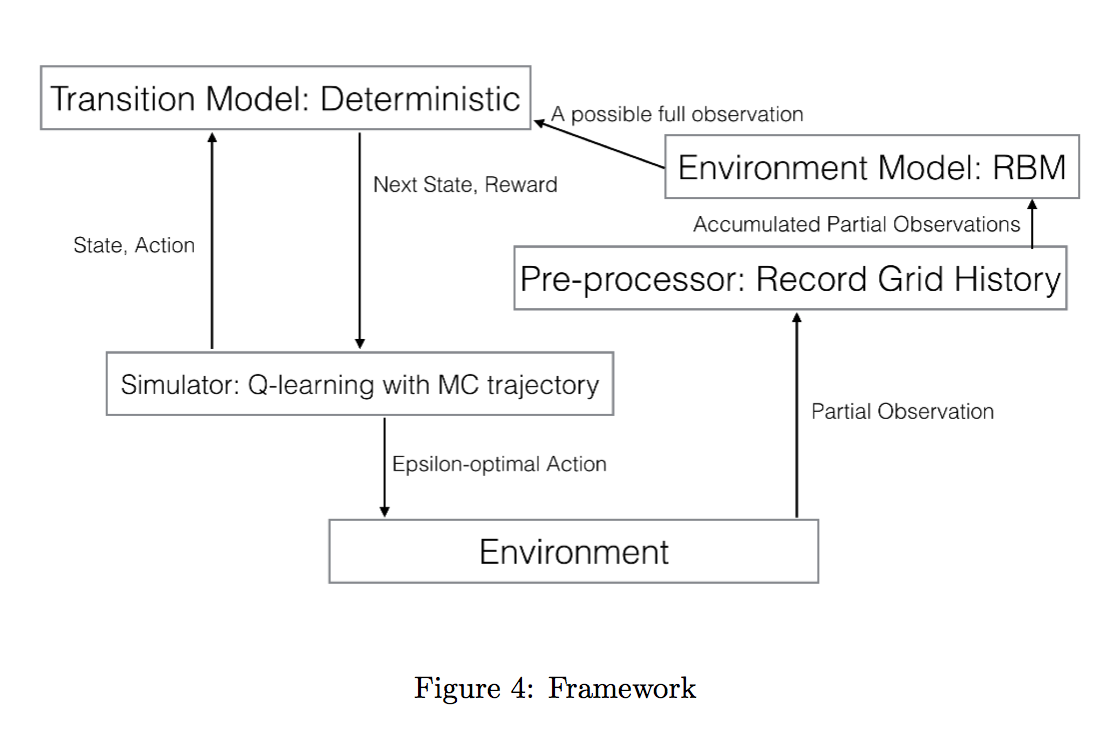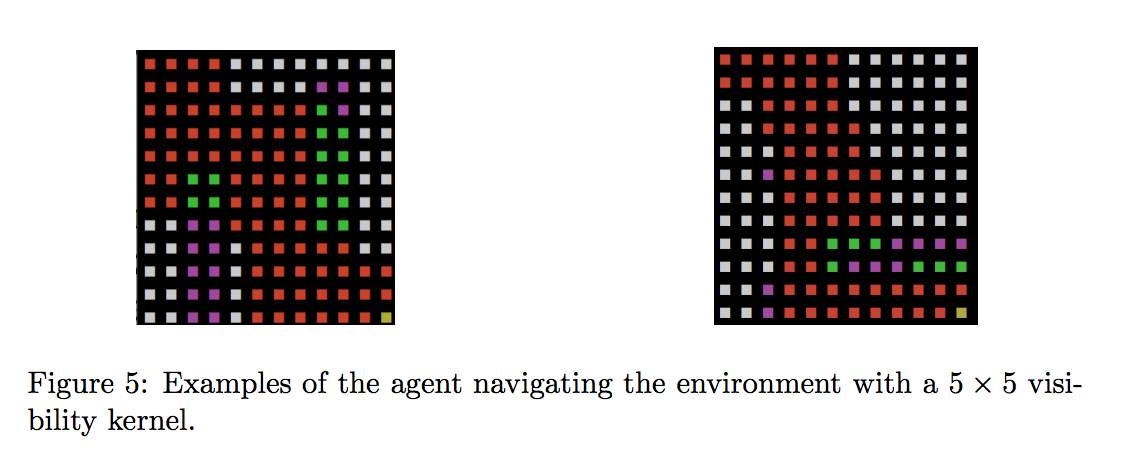 The agent uses the following architecture to optimally determine the task( environment ) and solve it ( the agent can only observe a 5x5 square of states around it )