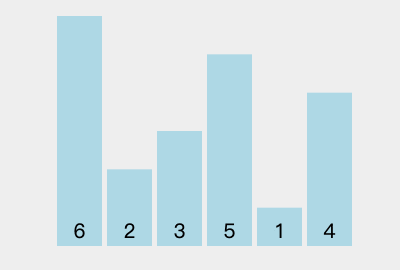 1趟排序,无已排序部分,把[6, 2, 3, 5, 1, 4](总共6个元素)作为未排序部分:- 遍历这