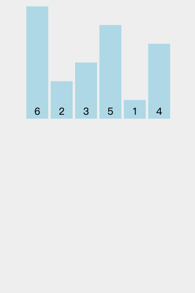 1趟排序,将[6]作为有序序列,把[2, 3, 5, 1, 4]作为无序序列。无序序列第1个元素为2。- 从右向左遍历有序序列